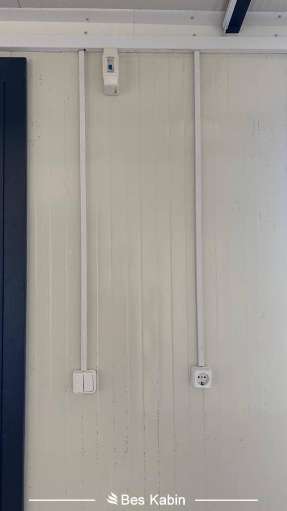 Eleketrik gücü 2000 W 220 Volt Prizler için 3×1,5 NYM Kablo, aydınlatmalar için 2×1,5 NYM TSE belgeli kablolar kullanılmaktadır.