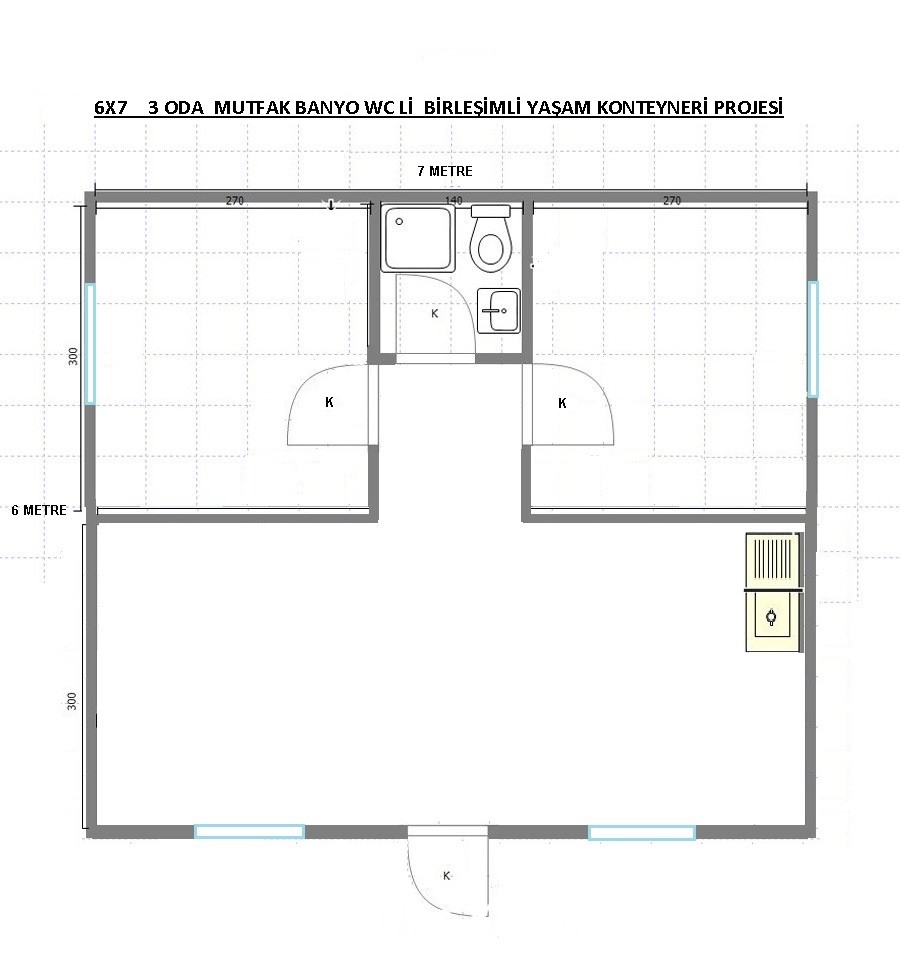6×7 42m2 BİRLEŞİMLİ BEŞİK ÇATILI 2+1 KONTEYNER 180.000TL +KDV